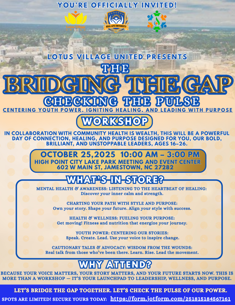 Lotus Village United aims to empower opportunity youth aging out or aged out of foster care by providing them with the tools and support needed to transition successfully into adulthood. Through a holistic approach involving professionals and educators from various fields, the organization focuses on supporting these youth in all aspects of their lives, including personal, professional, spiritual, mental, and physical well-being. This comprehensive support includes social and emotional guidance, financial literacy education, personal and professional development opportunities, self-care practices, and networking with the ultimate goal of helping them break free from cycles of hardship, redefine their identities, overcome challenges, and achieve fulfilling lives.